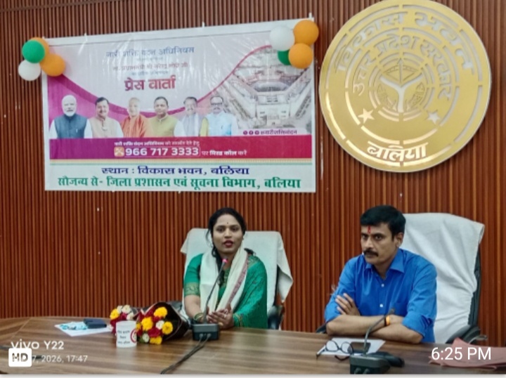 बलिया /विकास भवन सभागार में शुक्रवार को नारी शक्ति वंदन अधिनियम के संबंध में एक महत्वपूर्ण प्रेसवार्ता आयोजित की गई। कार्यक्रम की अध्यक्षता साहित्यकार, लेखिका एवं अधिवक्ता श्रीमती श्वेता पाण्डेय ने की। इस अवसर पर जिलाधिकारी मंगला प्रसाद सिंह ने उन्हें पुष्प गुच्छ एवं शॉल देकर सम्मानित किया। प्रेसवार्ता के दौरान जिलाधिकारी ने नारी शक्ति वंदन अधिनियम के महत्व पर प्रकाश डालते हुए कहा कि इस अधिनियम के अंतर्गत महिलाओं को 33 प्रतिशत आरक्षण प्रदान करने की व्यवस्था की गई है। उन्होंने बताया कि उत्तर प्रदेश सरकार द्वारा महिलाओं के सशक्तिकरण के लिए विभिन्न योजनाएं संचालित की जा रही हैं, जिनका उद्देश्य उन्हें सामाजिक, आर्थिक और राजनीतिक रूप से मजबूत बनाना है। कार्यक्रम में यह भी कहा गया कि प्रधानमंत्री नरेंद्र मोदी द्वारा शुरू की गई यह पहल ऐतिहासिक है, जो देश की महिलाओं को नीति निर्माण की मुख्यधारा में लाने का प्रयास करती है। इसे केवल एक विधायी प्रक्रिया न मानकर लोकतंत्र को अधिक समावेशी और संतुलित बनाने की दिशा में महत्वपूर्ण कदम बताया गया। वक्ताओं ने कहा कि संसद में इस अधिनियम के क्रियान्वयन से जुड़े संशोधन विधेयक पर चर्चा शुरू हो चुकी है, जो देश की आधी आबादी को निर्णय प्रक्रिया में समान भागीदारी देने का मार्ग प्रशस्त करेगा।