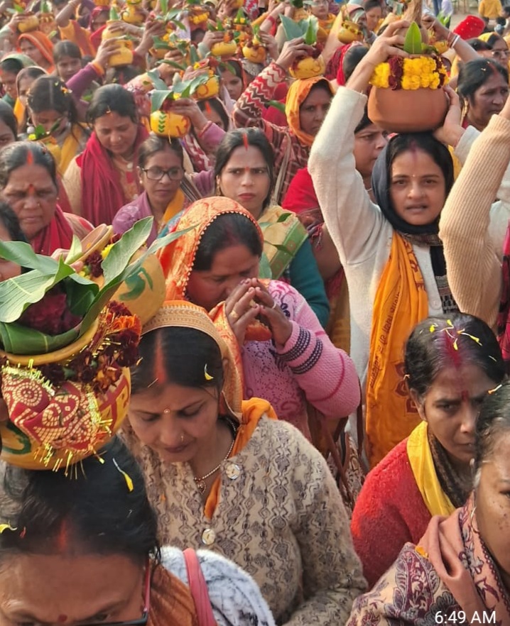 सैकड़ों की संख्या में शामिल युवतियों और महिलाओं ने सिर पर कलश धारण कर शहर का किया भ्रमण।