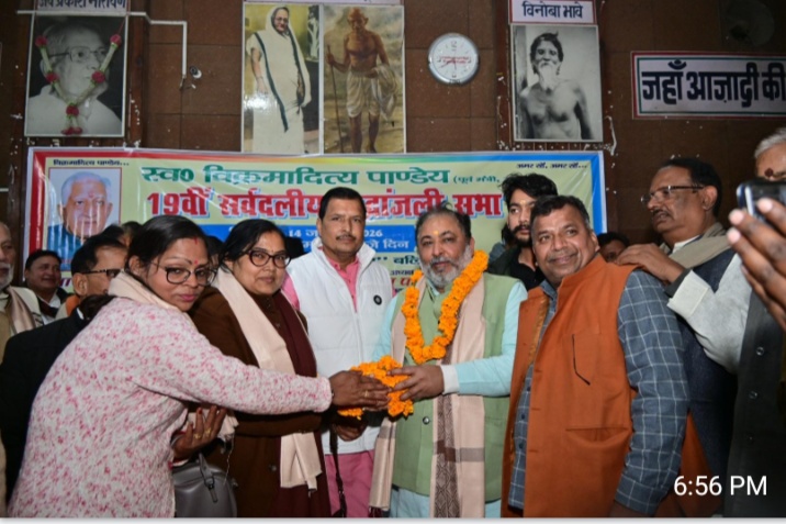 बलिया /पूर्व मंत्री स्व. विक्रमादित्य पांडेय महान शिक्षक के साथ ही विकास के प्रति समर्पित रहने वाले व्यक्ति थे। उनका व्यक्तित्व समाज के लिए आज भी प्रेरणास्रोत हैं। यह बातें बुधवार को प्रदेश सरकार के परिवहन मंत्री दयाशंकर सिंह ने टाउन हाल में स्व. विक्रमादित्य पांडेय की पुण्यतिथि पर आयोजित सर्वदलीय श्रद्धांजलि सभा में कही। उन्होंने कहा कि वे गांव-गरीब व किसान के हित में आजीवन कार्य करते रहे। विक्रमादित्य पांडेय की सोच में अंतिम व्यक्ति का जीवन परिवर्तन ही विकास था। उनके विकास के संकल्पों पर चलना ही उनके प्रति सच्ची श्रद्धांजलि होगी। उन्होंने जिले में विकास की बुनियाद रखी और कई बड़े कार्य कराए। ऐसे नेताओं के पदचिन्हों पर चलने से ही समाज में समरसता आएगी। कहा कि विक्रमादित्य पांडेय दूरदर्शी सोच के नेता थे और संबंधों का निर्वाह करने में तत्परता से आगे रहते थे। विकास के प्रति उनकी सोच ने ही उन्हें महान बनाया।