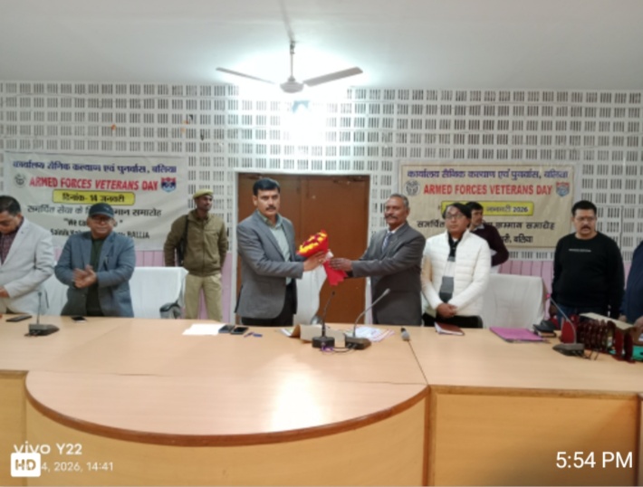 बलिया /भारत की सशस्त्र सेनाओं के वेटरन्स की बहादुरी, समर्पण और बलिदान को सम्मान देने के उद्देश्य से बुधवार को कलेक्ट्रेट सभागार में सम्मान समारोह का आयोजन किया गया। कार्यक्रम जोश, गर्व और सम्मान के वातावरण में संपन्न हुआ। जिलाधिकारी मंगला प्रसाद सिंह ने वीर नारियों, पदक विजेताओं और पूर्व सैनिकों को अंगवस्त्र, स्मृति चिन्ह, प्रमाण पत्र भेंट कर तथा माल्यार्पण कर सम्मानित किया।