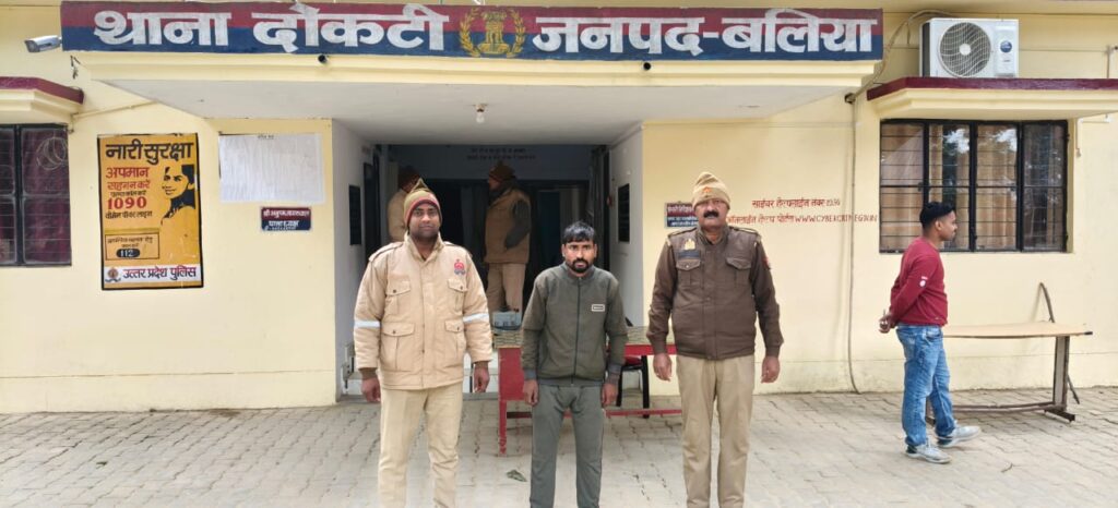 बलिया /पुलिस अधीक्षक बलिया ओमवीर सिंह के निर्देशन में अपराध की रोकथाम व अपराधियों की गिरफ्तारी हेतु चलाये जा रहे अभियान के क्रम अपर पुलिस अधीक्षक बलिया दक्षिणी कृपा शंकर के निकट पर्यवेक्षण व क्षेत्राधिकारी बैरिया फहीम कुरैशी व थानाध्यक्ष दोकटी के कुशल नेतृत्व में थाना दोकटी पुलिस टीम को मिली सफलता । उल्लेखनीय है कि 27 दिसंबर 2025 को थाना दोकटी पर वादी द्वारा प्रार्थना पत्र प्राप्त हुआ कि 27 दिसंबर 2025 को जब वादि ( गौशाला के चौकीदार ) अपनी ड्यूटी पर था उसी समय गौशाला से किशोरी यादव उर्फ दीपक यादव पुत्र राजकुमार यादव निवासी दया छपरा थाना बैरिया जनपद बलिया द्वारा दो गाय चोरी कर लेने के संम्बन्ध मे प्राप्त हुआ, इस सम्बन्ध मे थाना स्थानीय द्वारा तत्काल मु0अ0सं0 273/2025 धारा 305(a) बी0एन0एस0 पंजीकृत किया गया ।