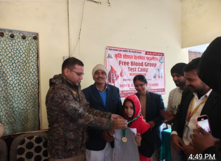 बलिया /29 दिसंबर 2025 को कृति सोशल वेलफेयर फाउंडेशन के तत्वावधान में न्यू डी.ए.वी. पब्लिक स्कूल, पचरुखिया, बलिया में निःशुल्क ब्लड टेस्ट कैंप का सफल आयोजन किया गया। इस स्वास्थ्य शिविर का उद्घाटन मुख्य अतिथि क्षेत्राधिकारी बैरिया द्वारा फीता काटकर किया गया।